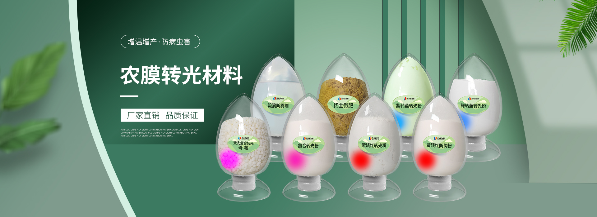 我公司前身為2011年成立的淄博舜明熒光科技有限公司。隨著公司的發(fā)展,廠址從淄博搬遷到青島,2020年5月公司重新注冊為山東齊舜新材料有限公司。公司注冊資本2000萬元,主要從事新材料研究和開發(fā)。目前主要產(chǎn)品包括:農(nóng)膜用轉(zhuǎn)光粉、轉(zhuǎn)光母粒以及轉(zhuǎn)光農(nóng)膜;農(nóng)膜用長效防霧流滴涂覆液;復(fù)合肥添加劑及葉面肥(稀土微肥);防偽粉;LED封裝熒光粉;夜光粉;太陽能光伏電池增效熒光粉;鋰電池正極材料等。